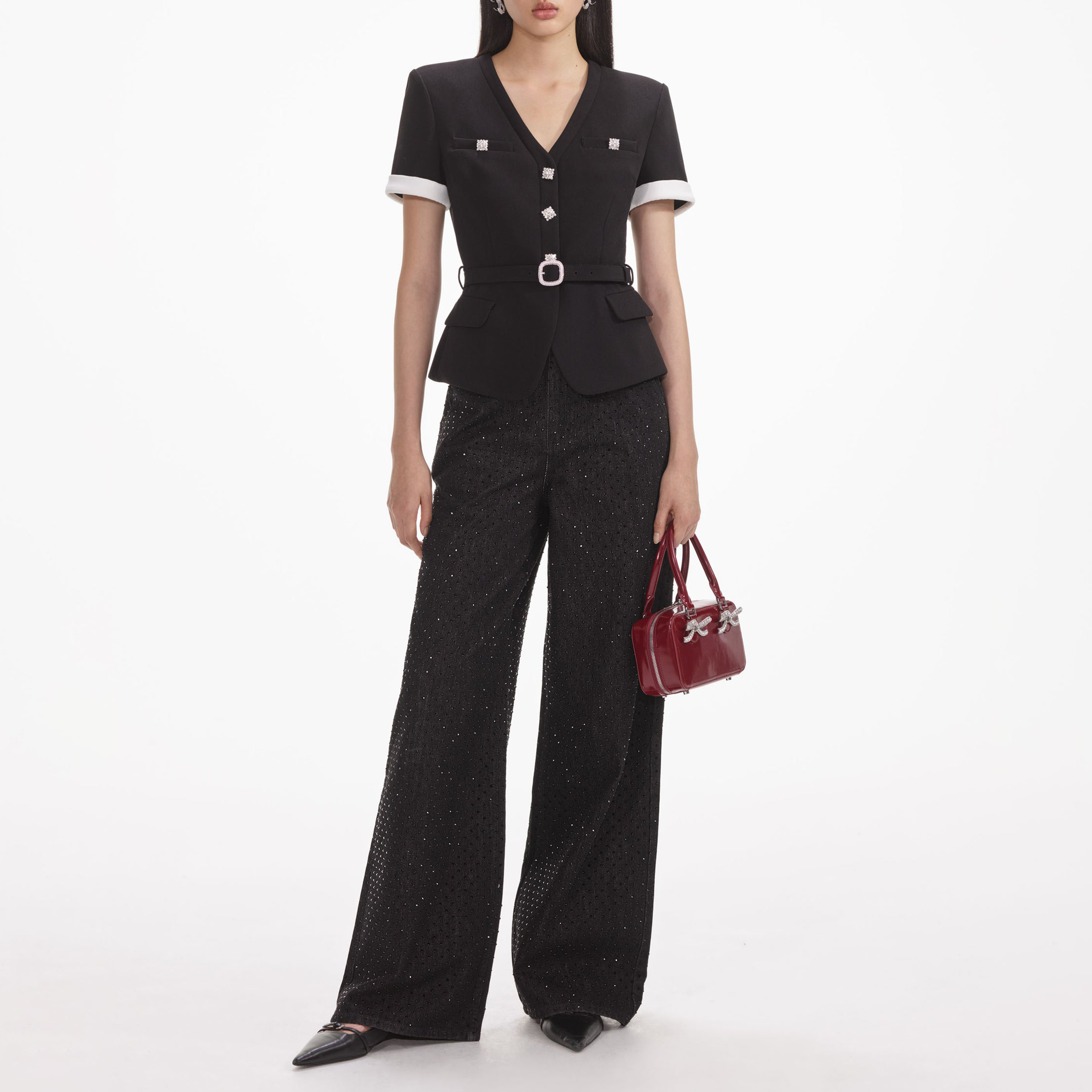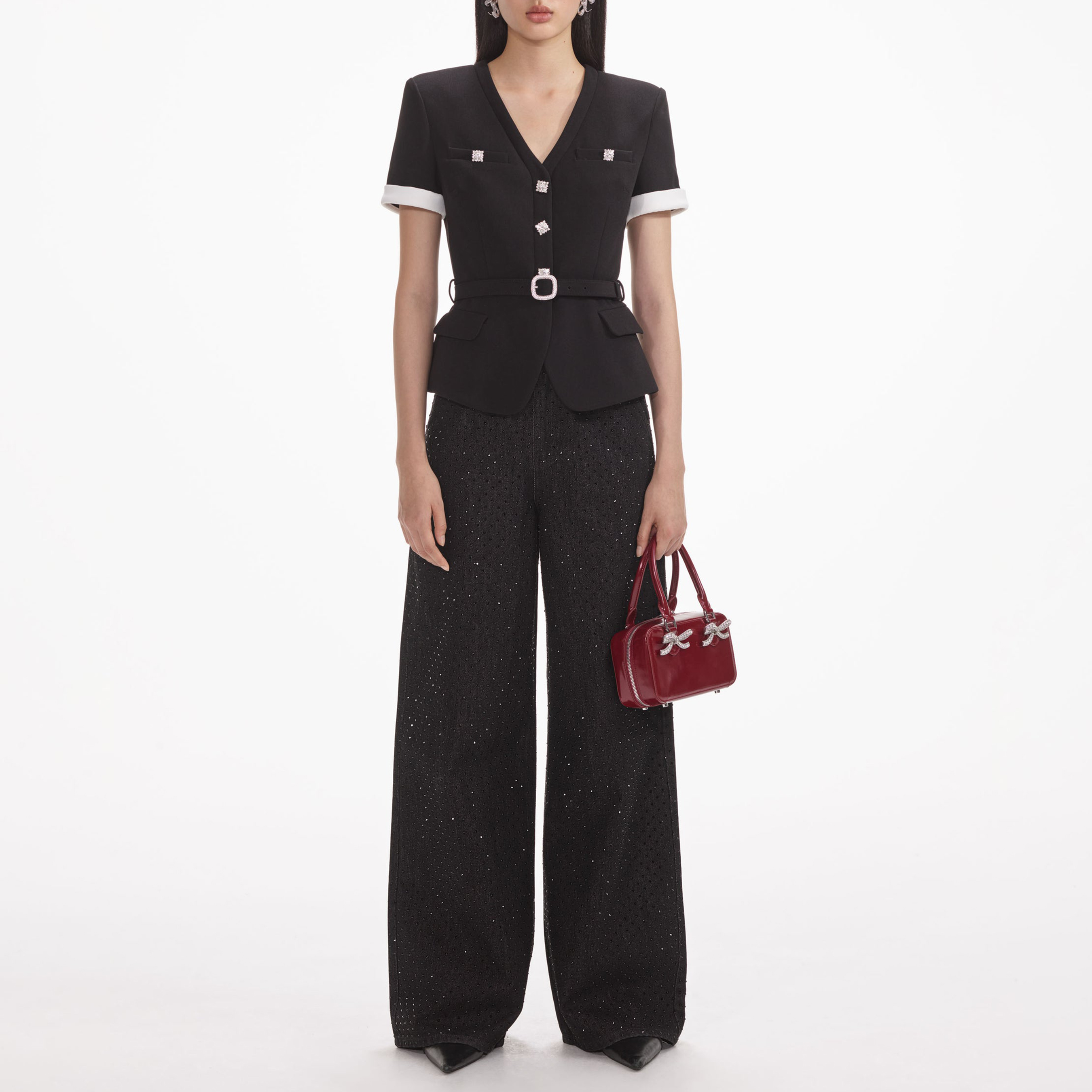 Black Crepe Contrast Top 854336