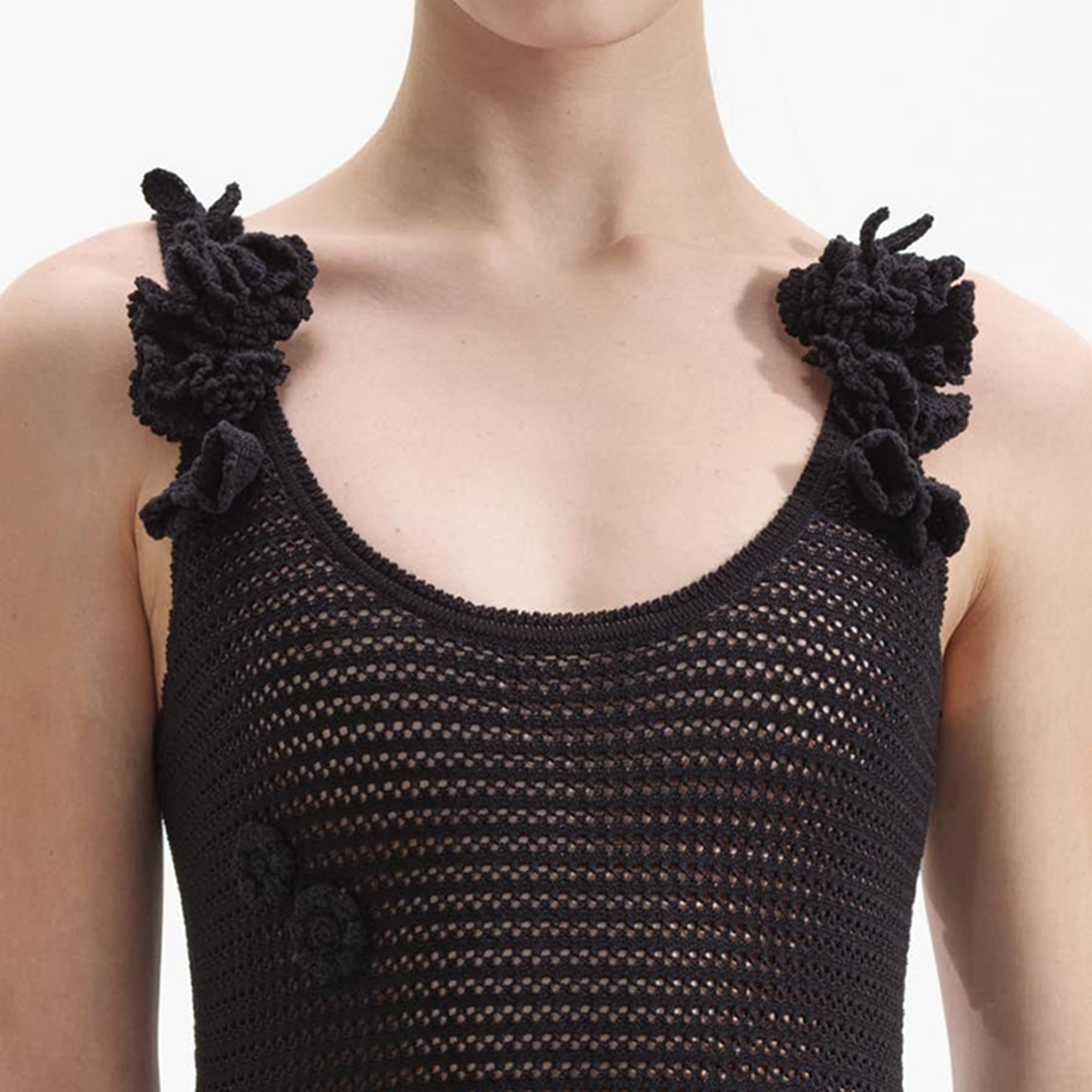 Black Crochet Midi Dress 854558