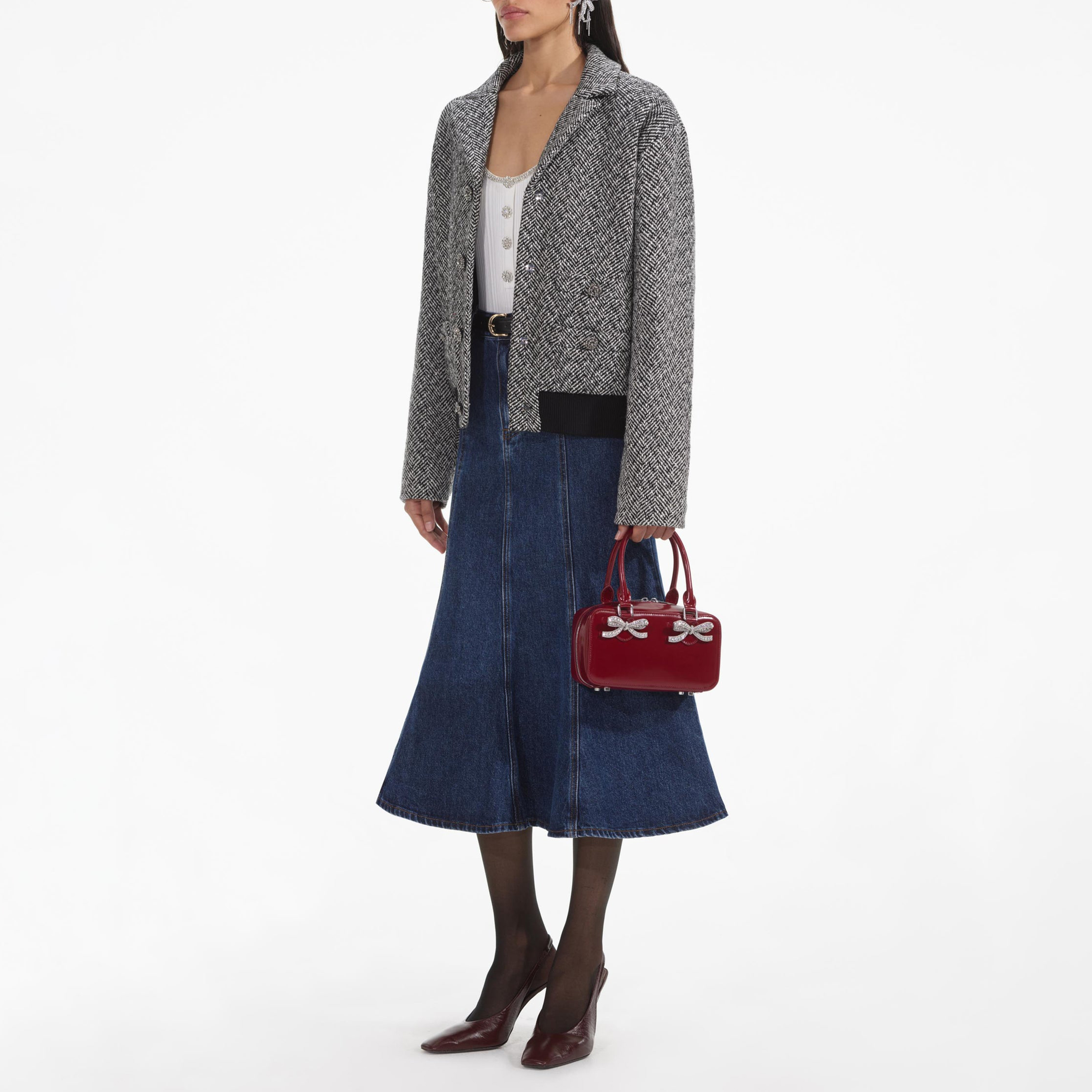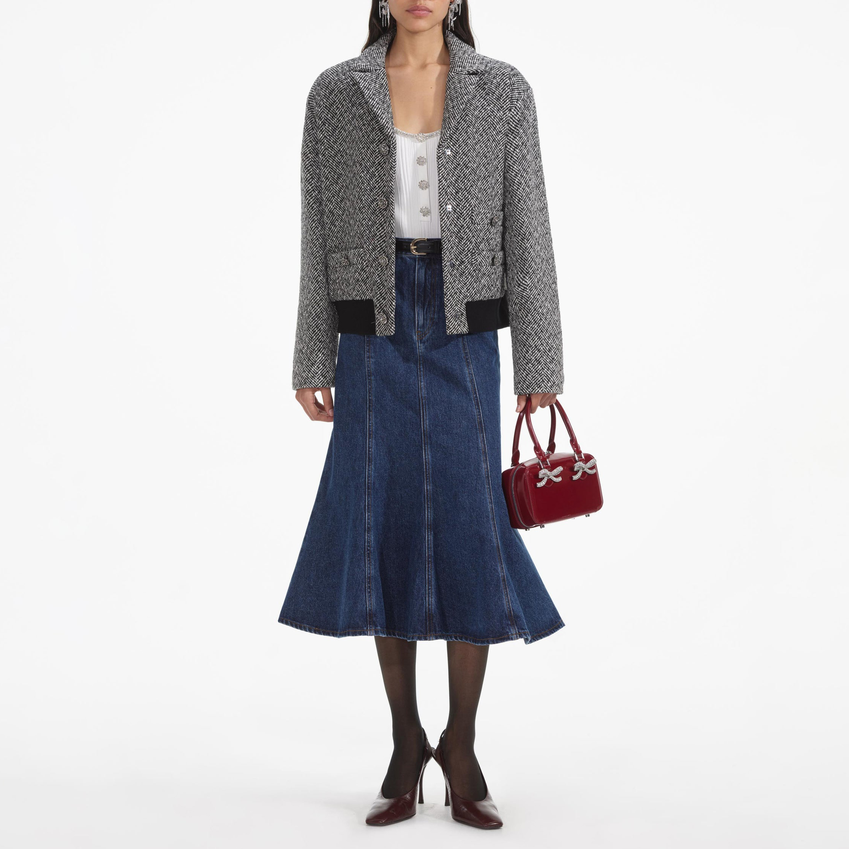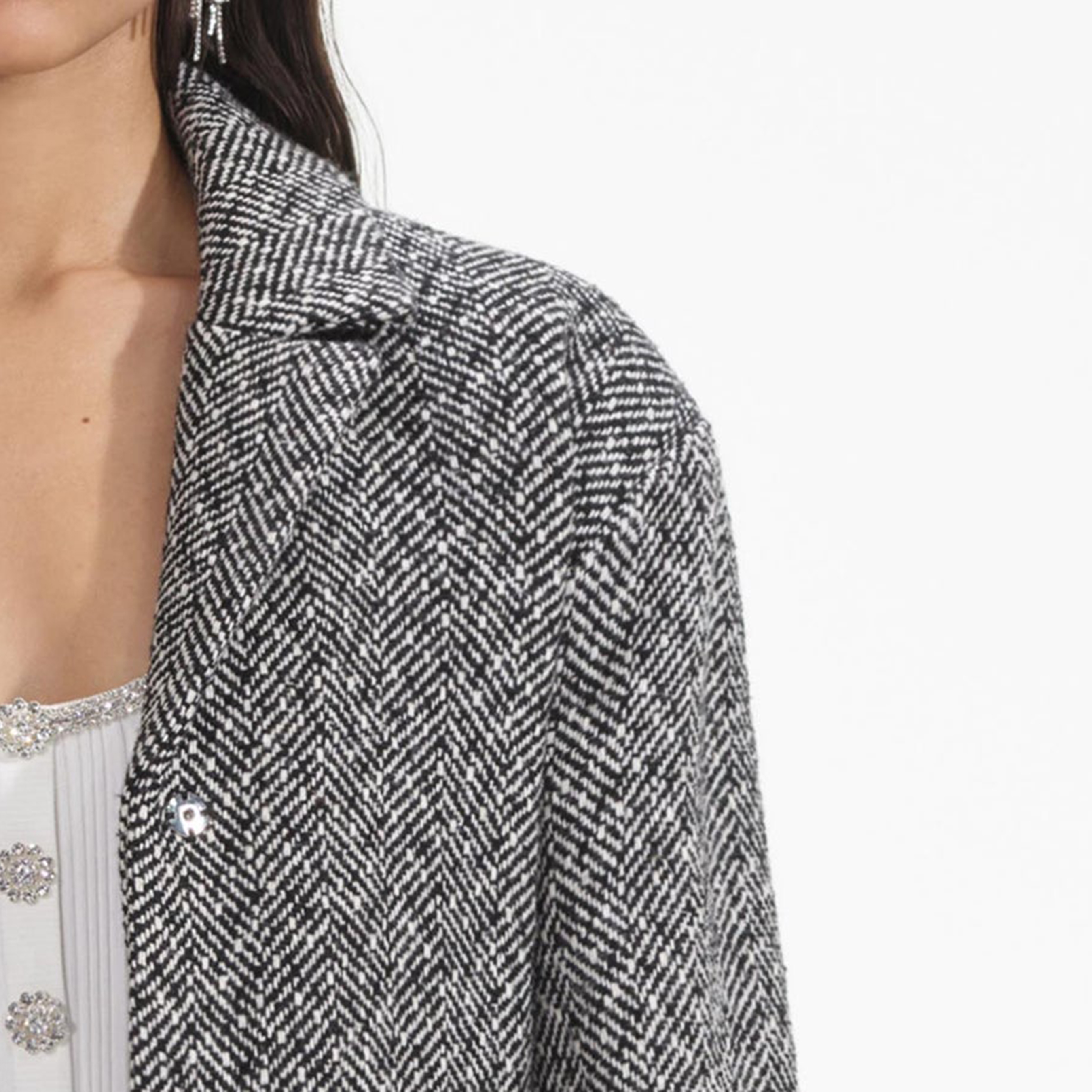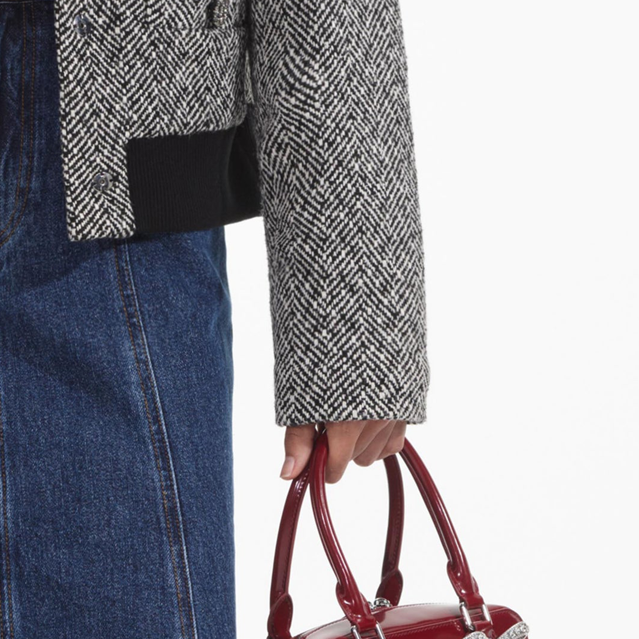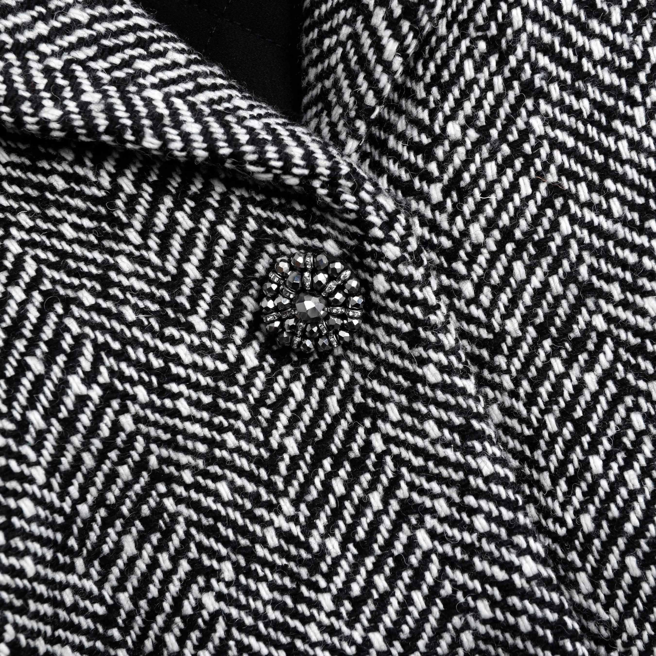 Black Herringbone Bomber Jacket 854400