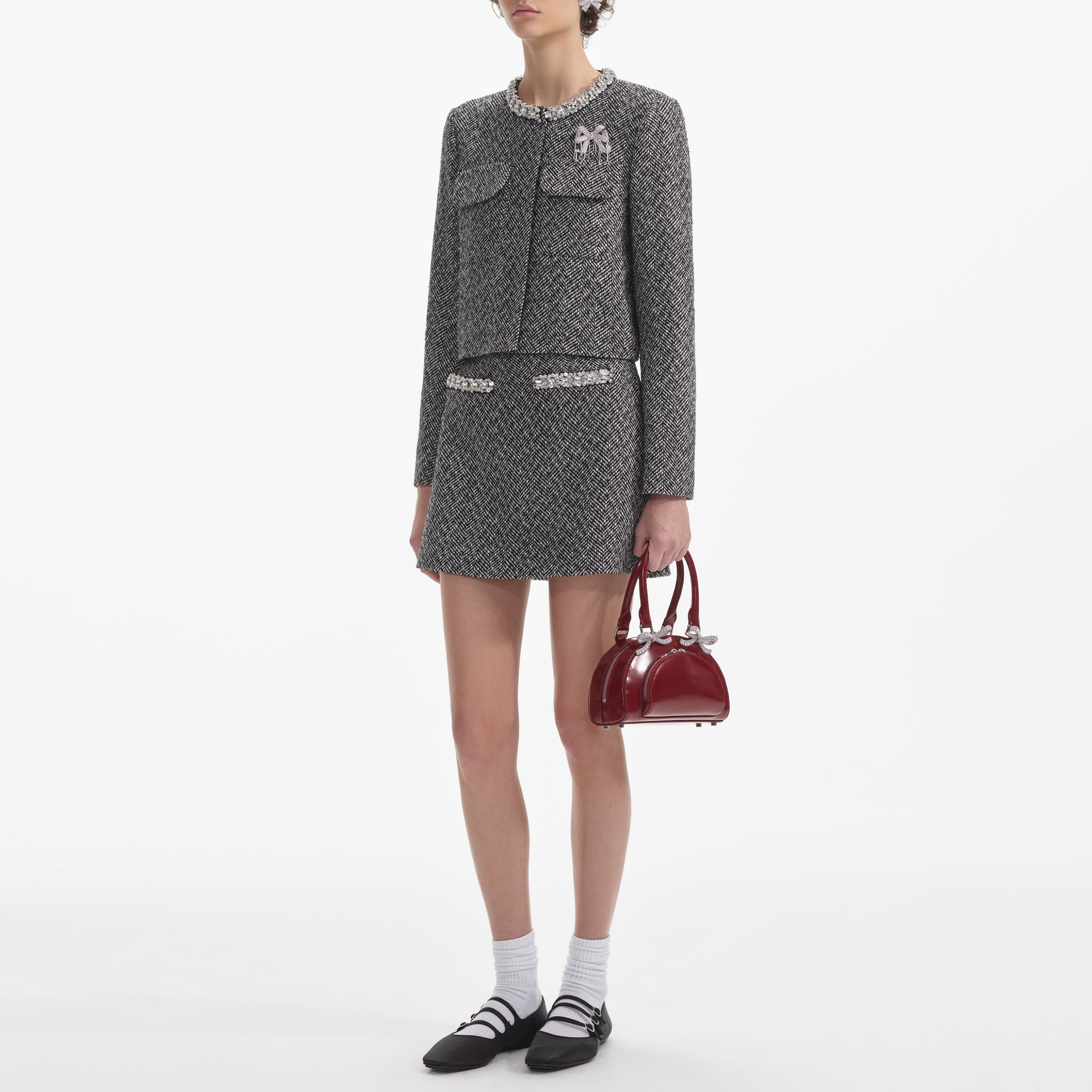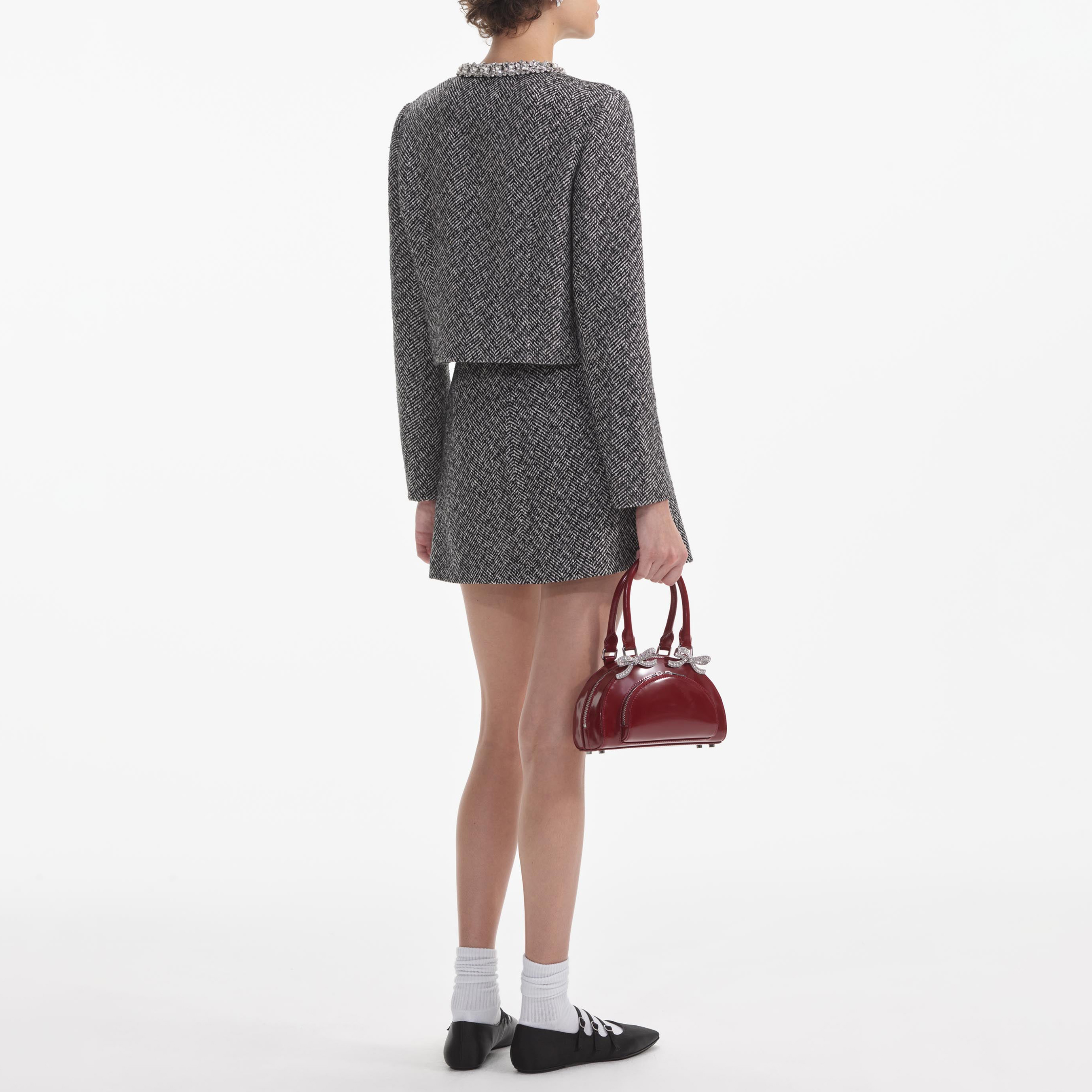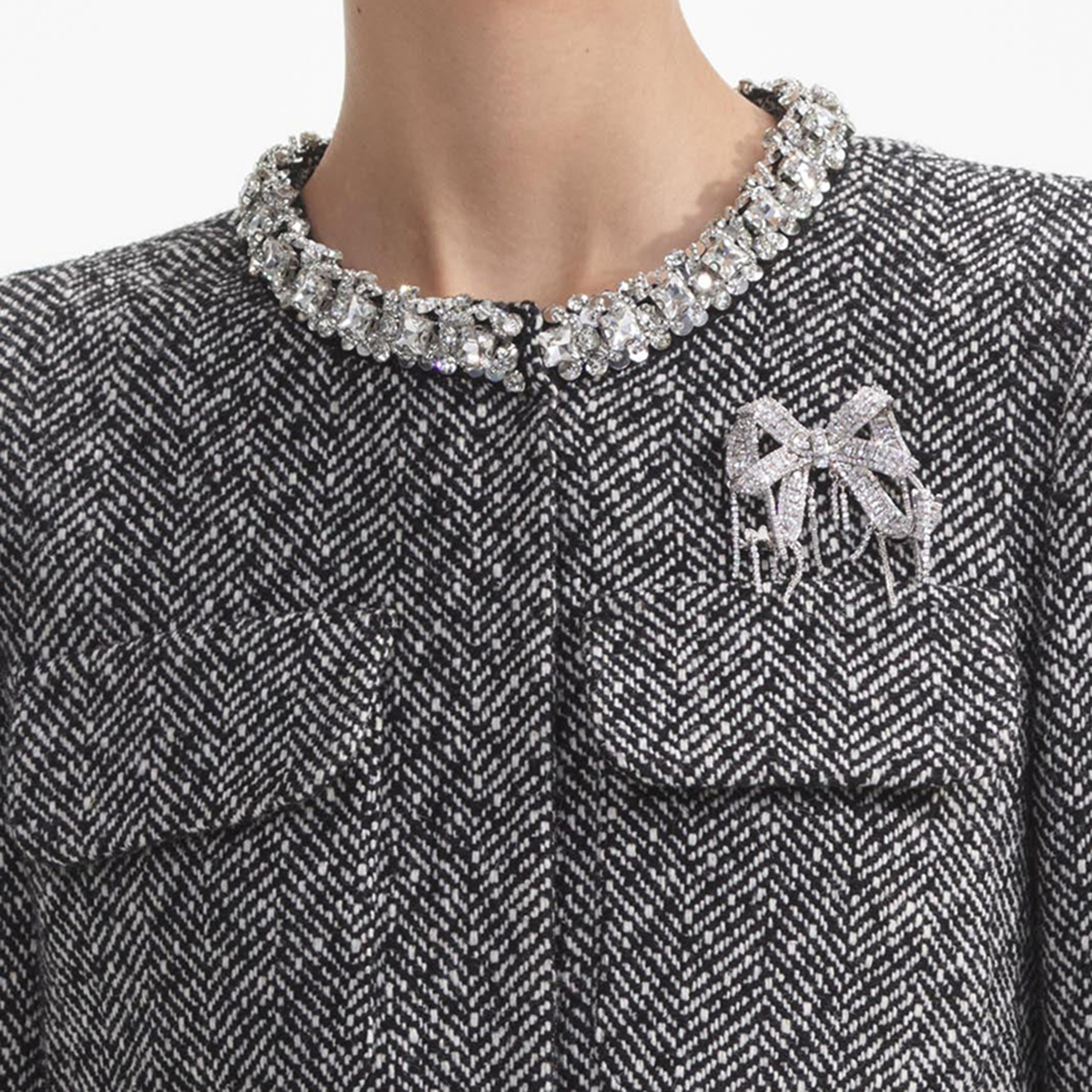 Black Herringbone Embellished Jacket 854708