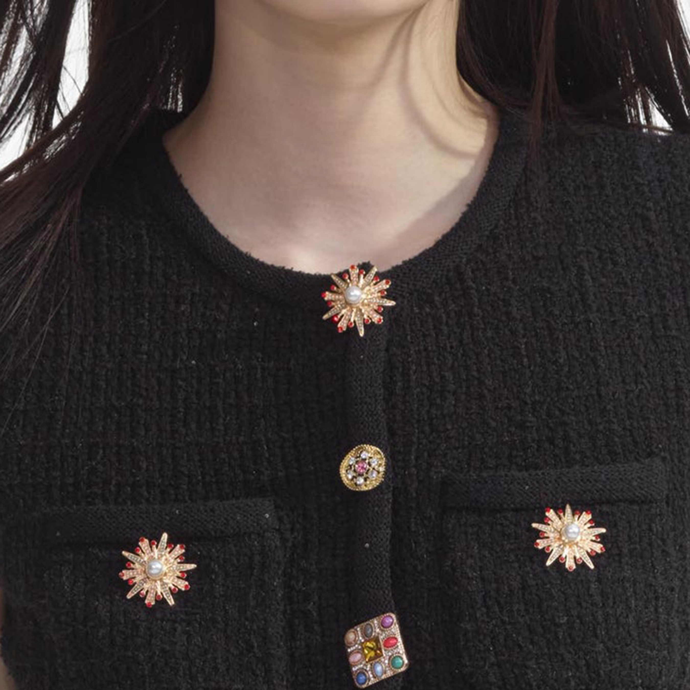Black Jewel Button Knit Top 854293