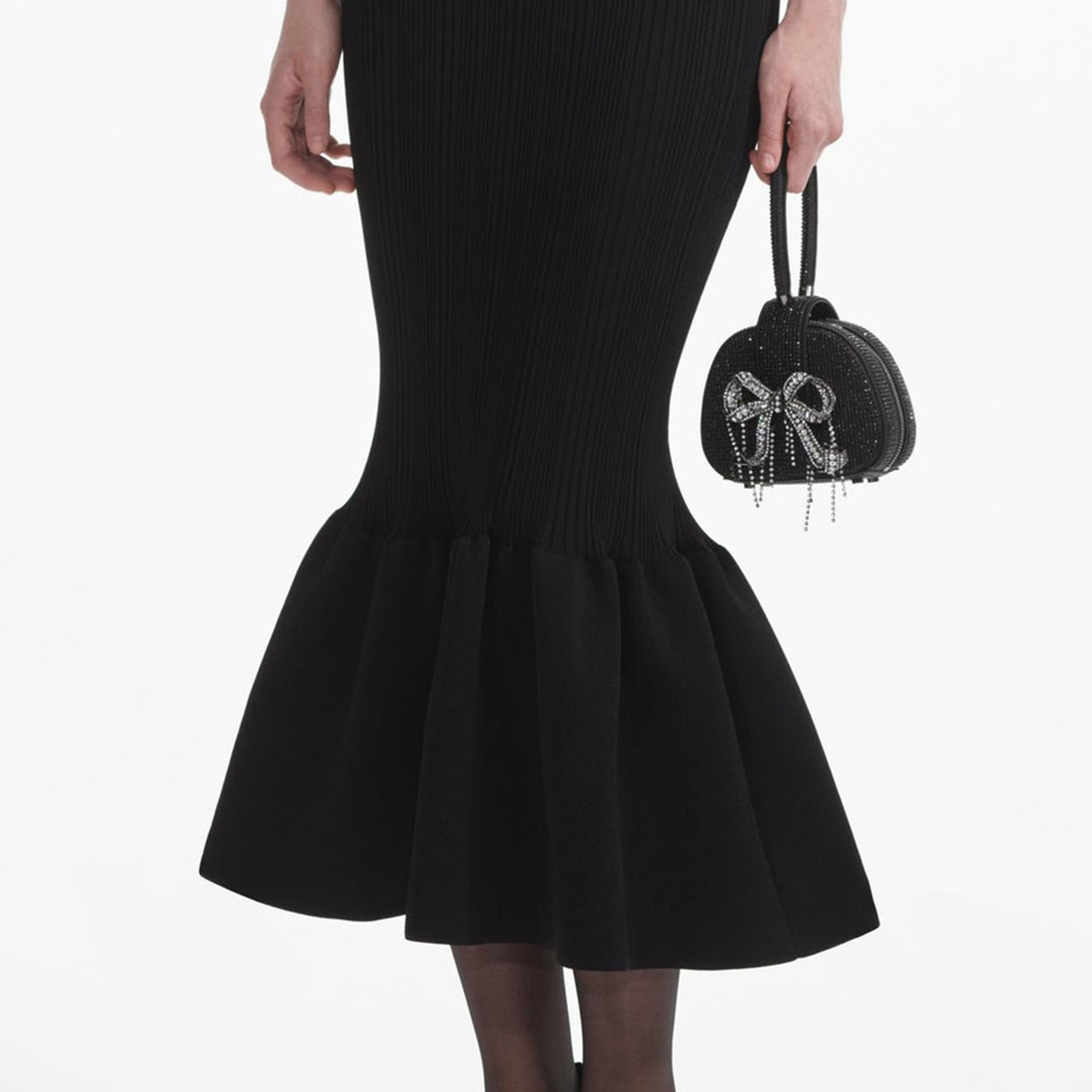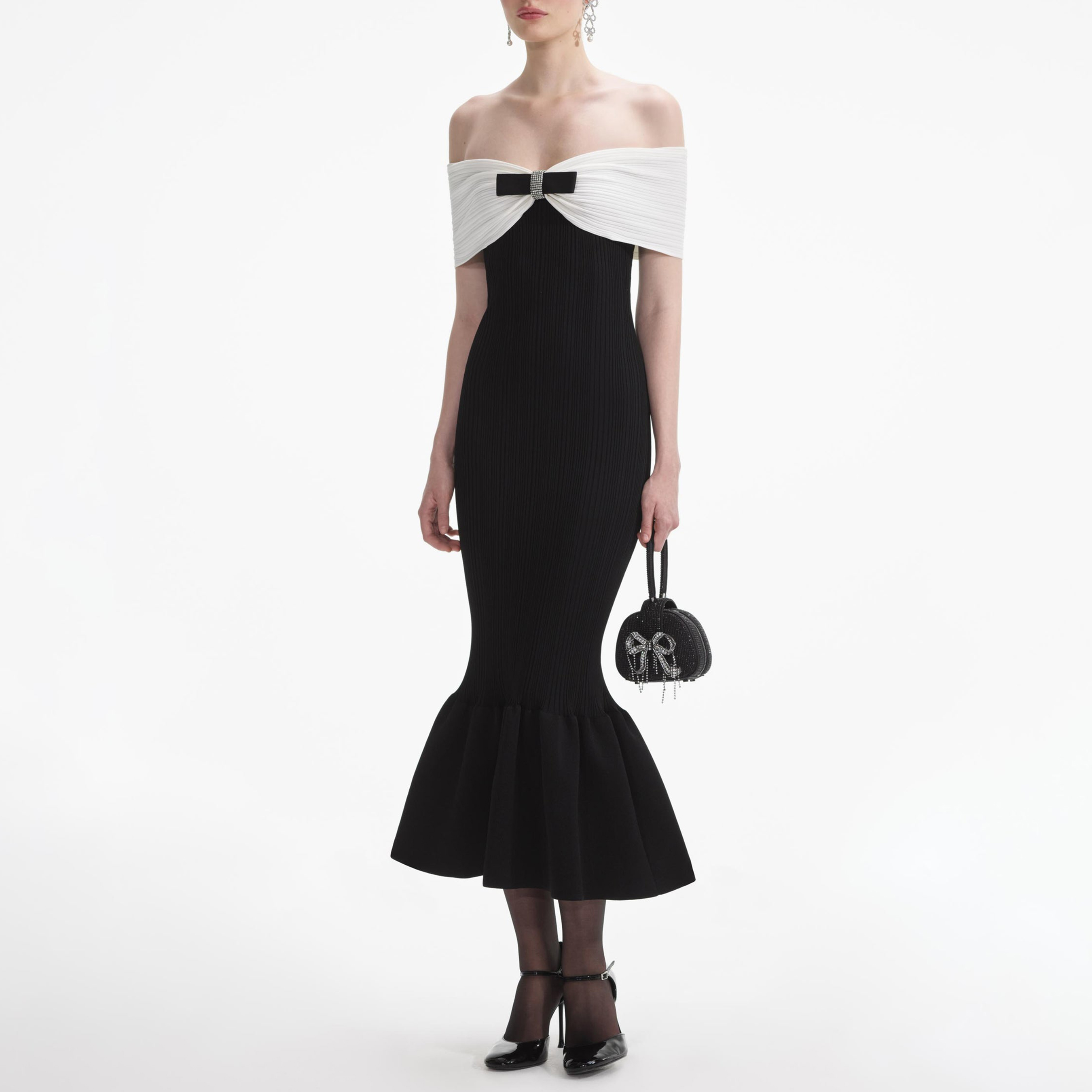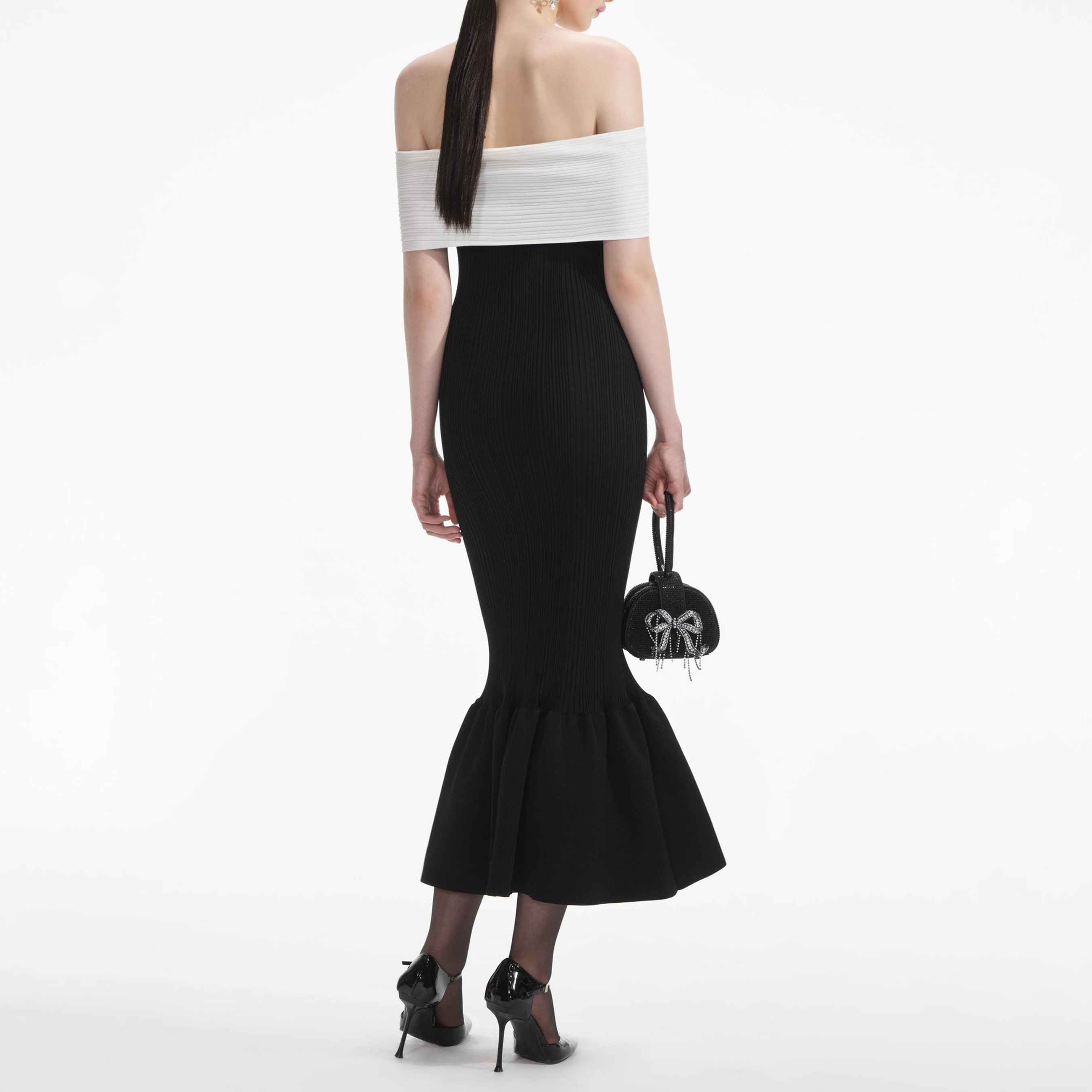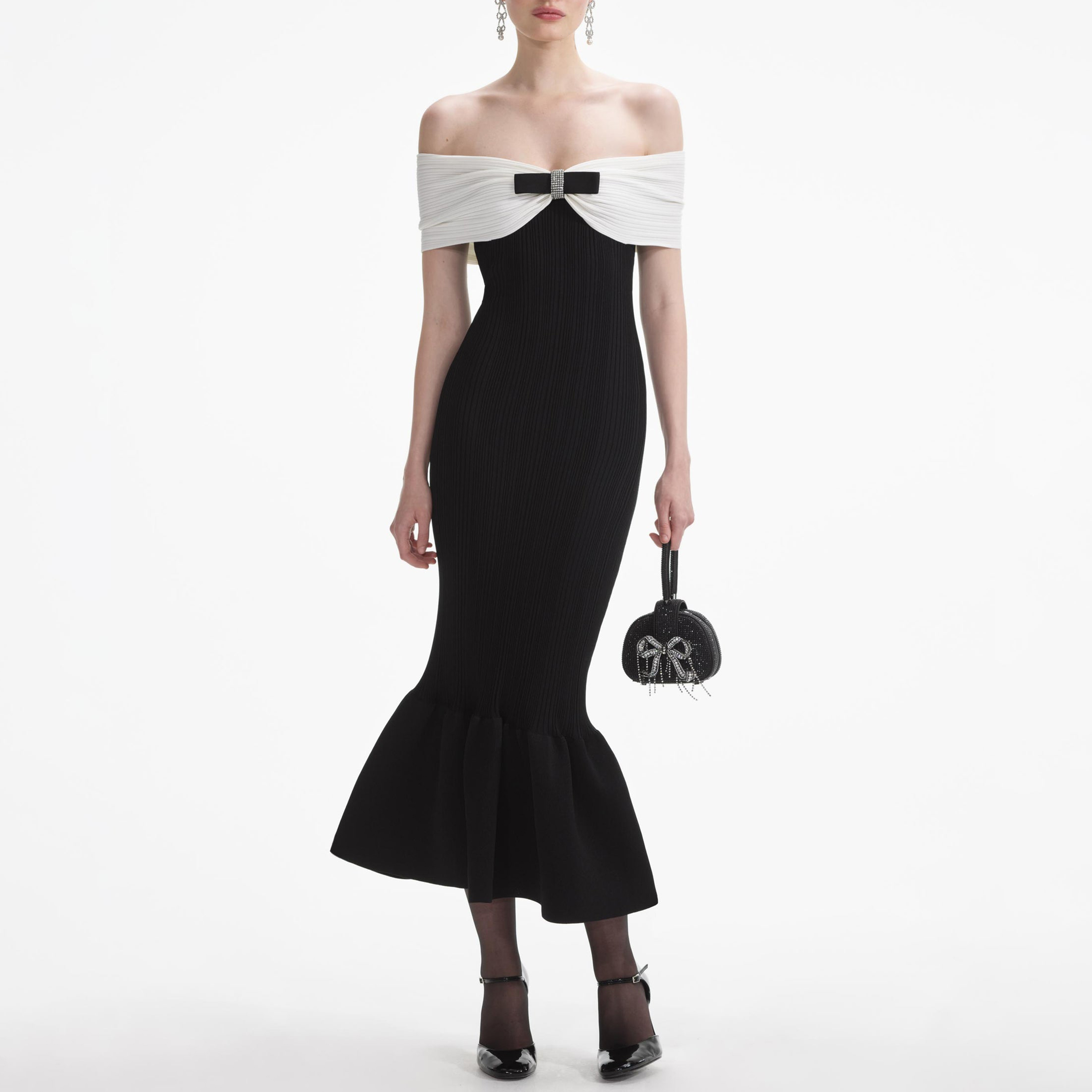 Black Knit Bow Midi Dress 854465