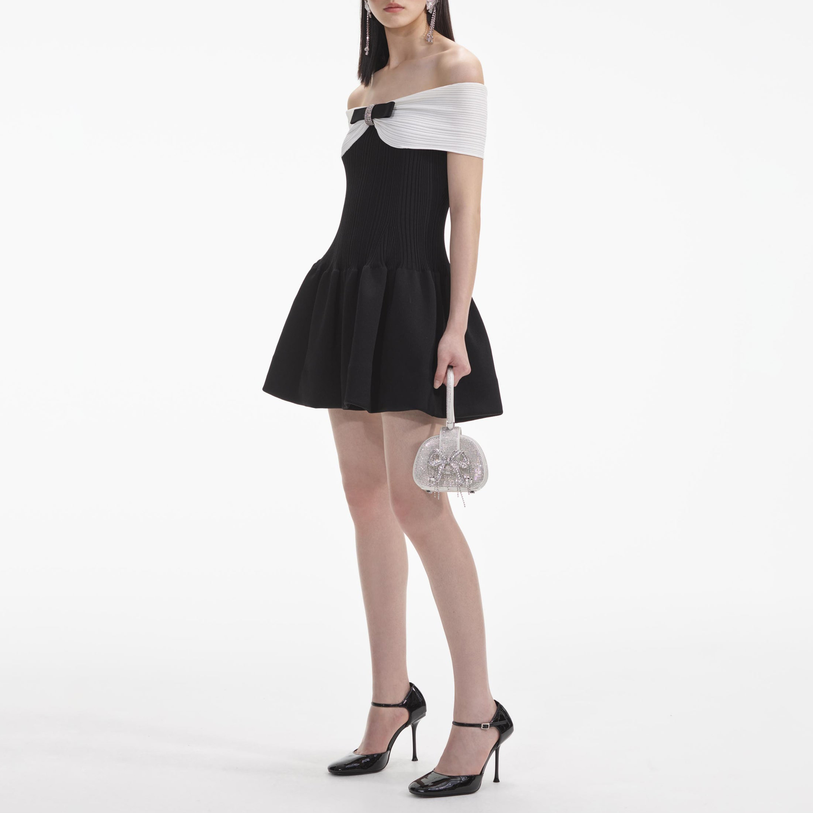 Black Knit Bow Mini Dress 854441