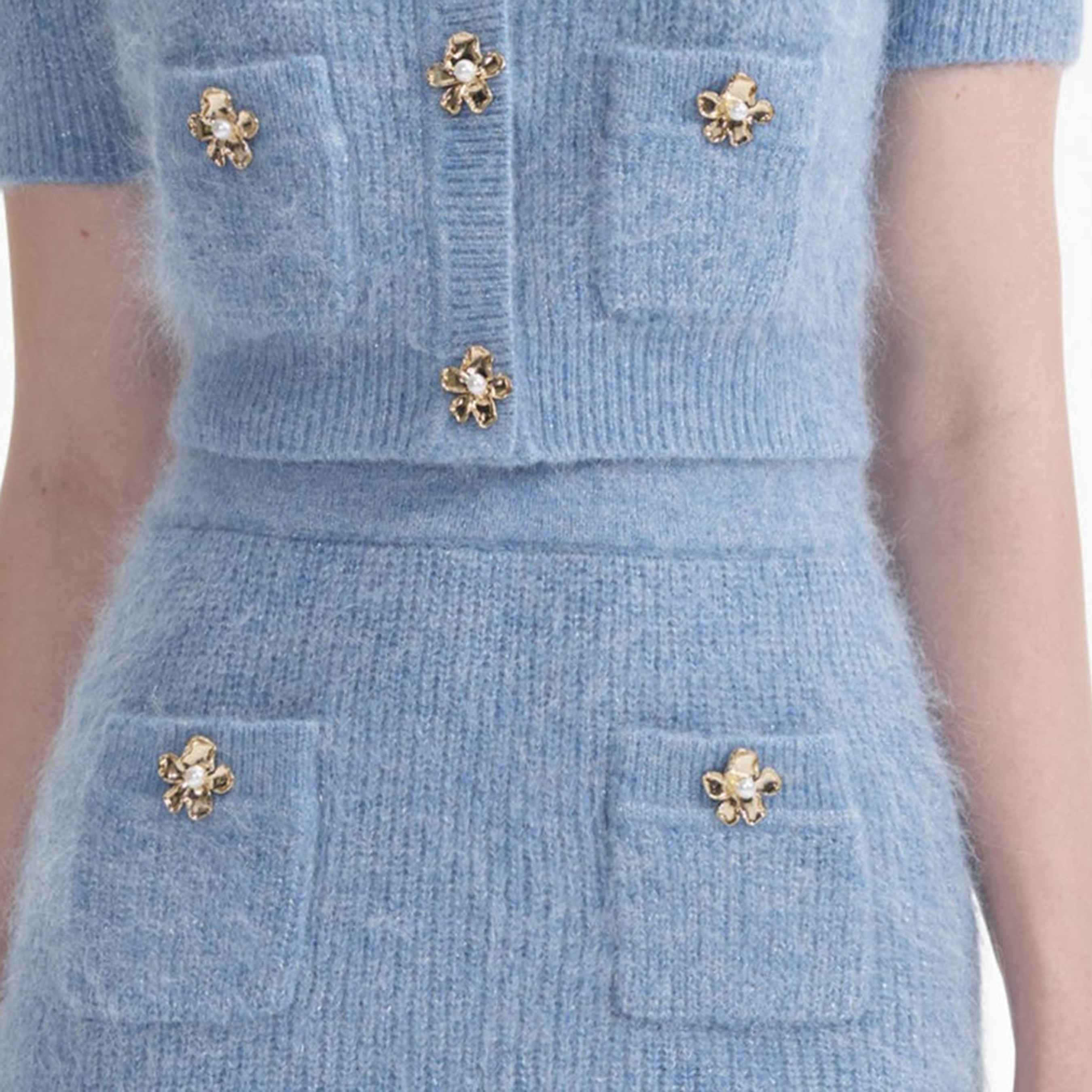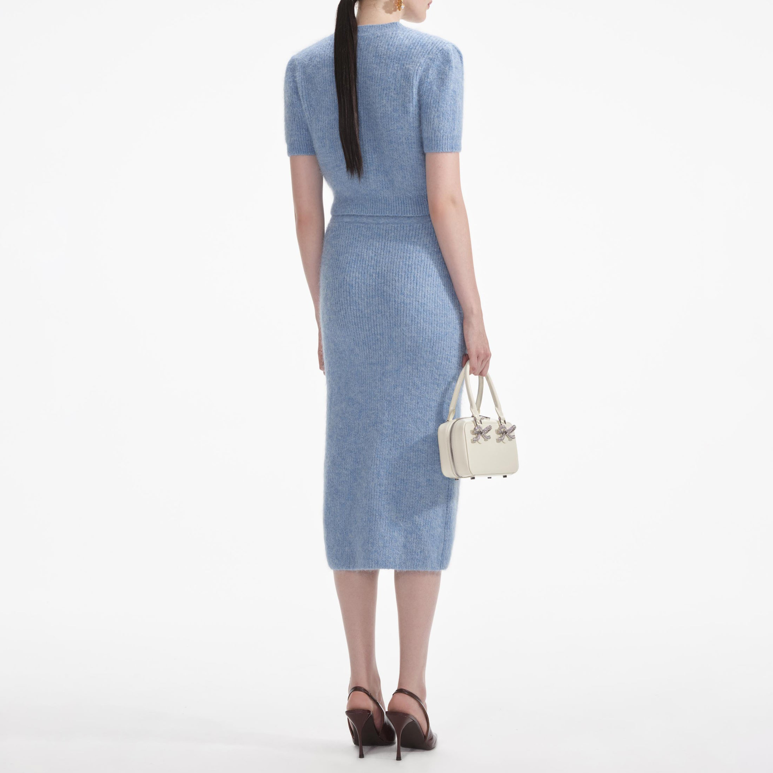 Blue Soft Knit Midi Skirt 854481