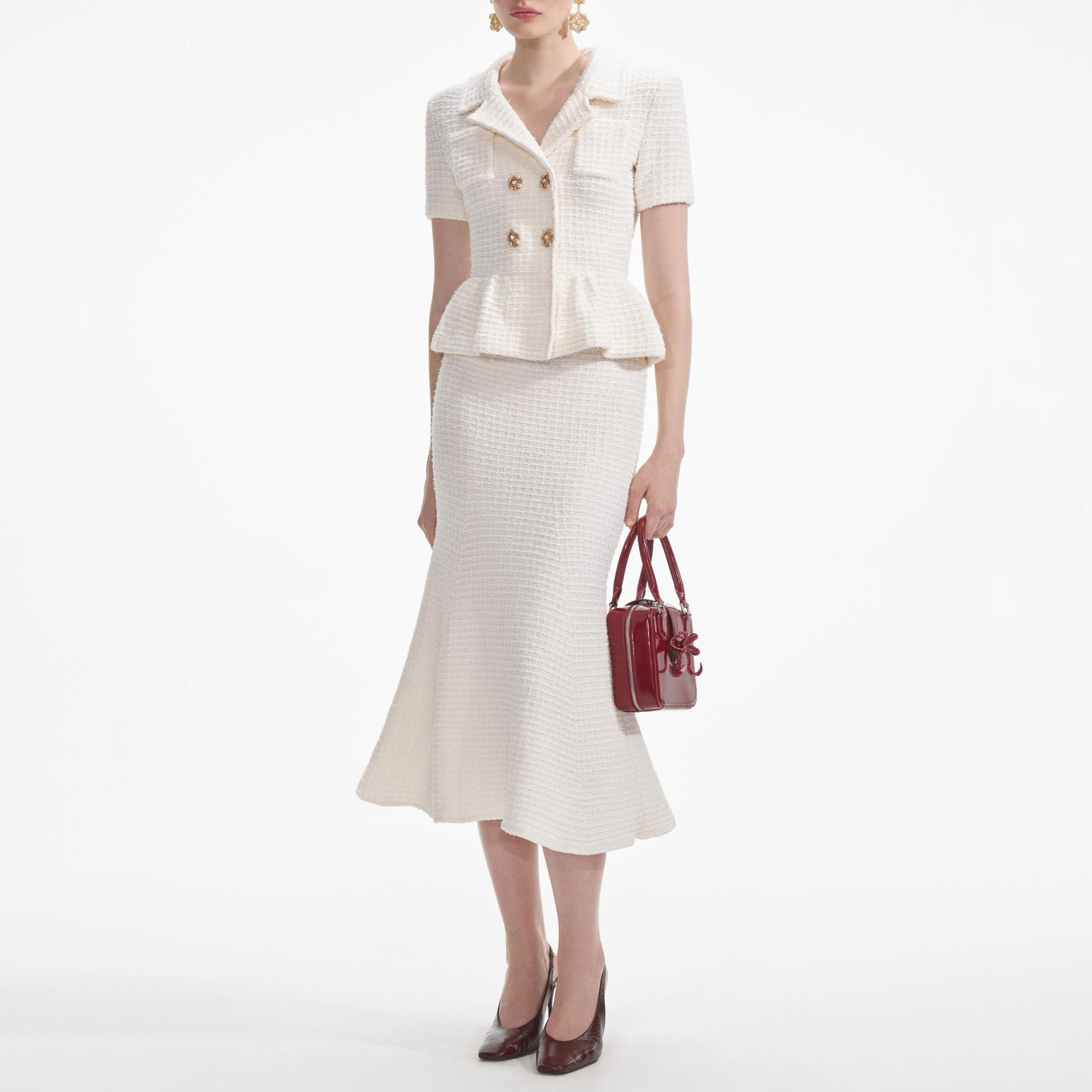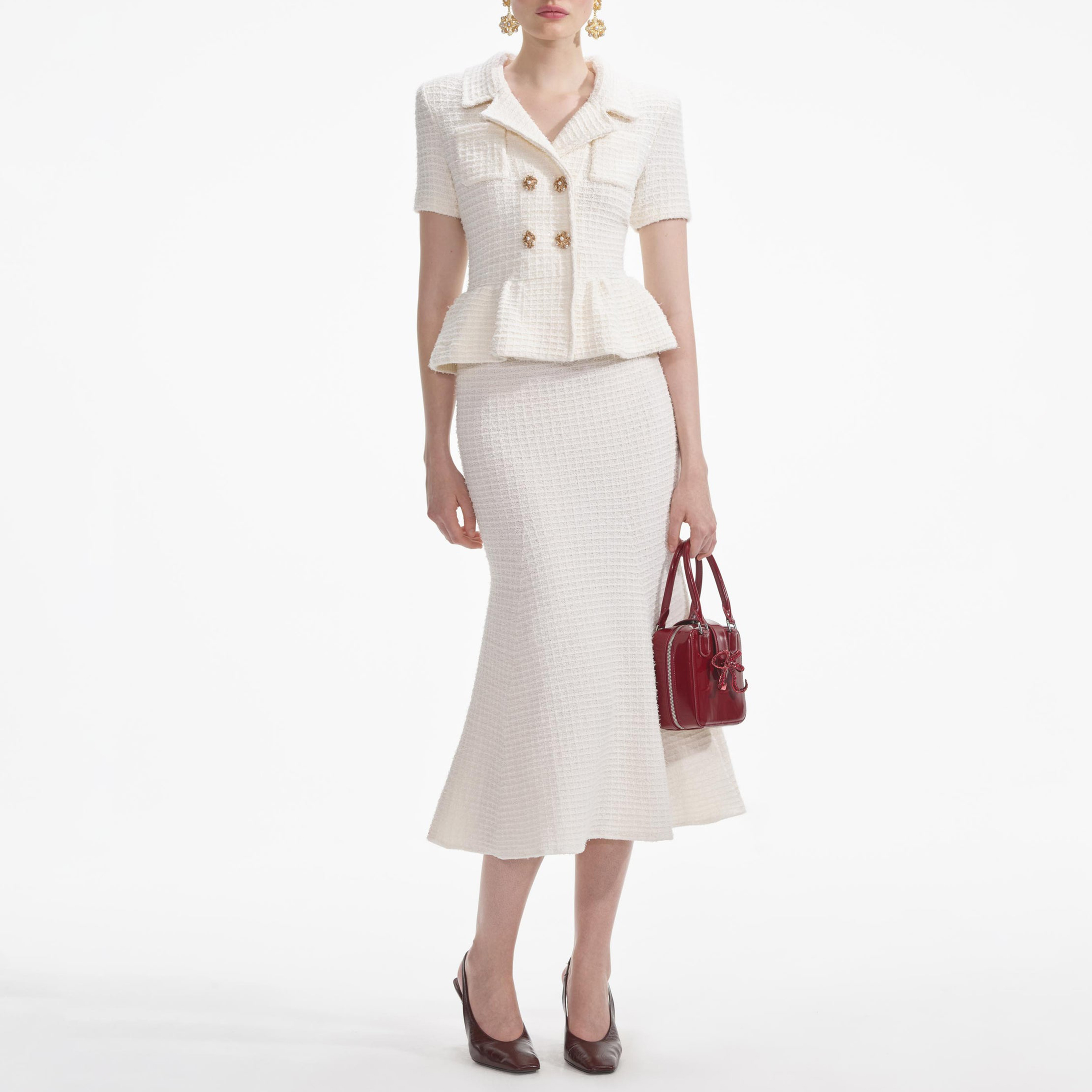 Cream Textured Knit Midi Dress 854437