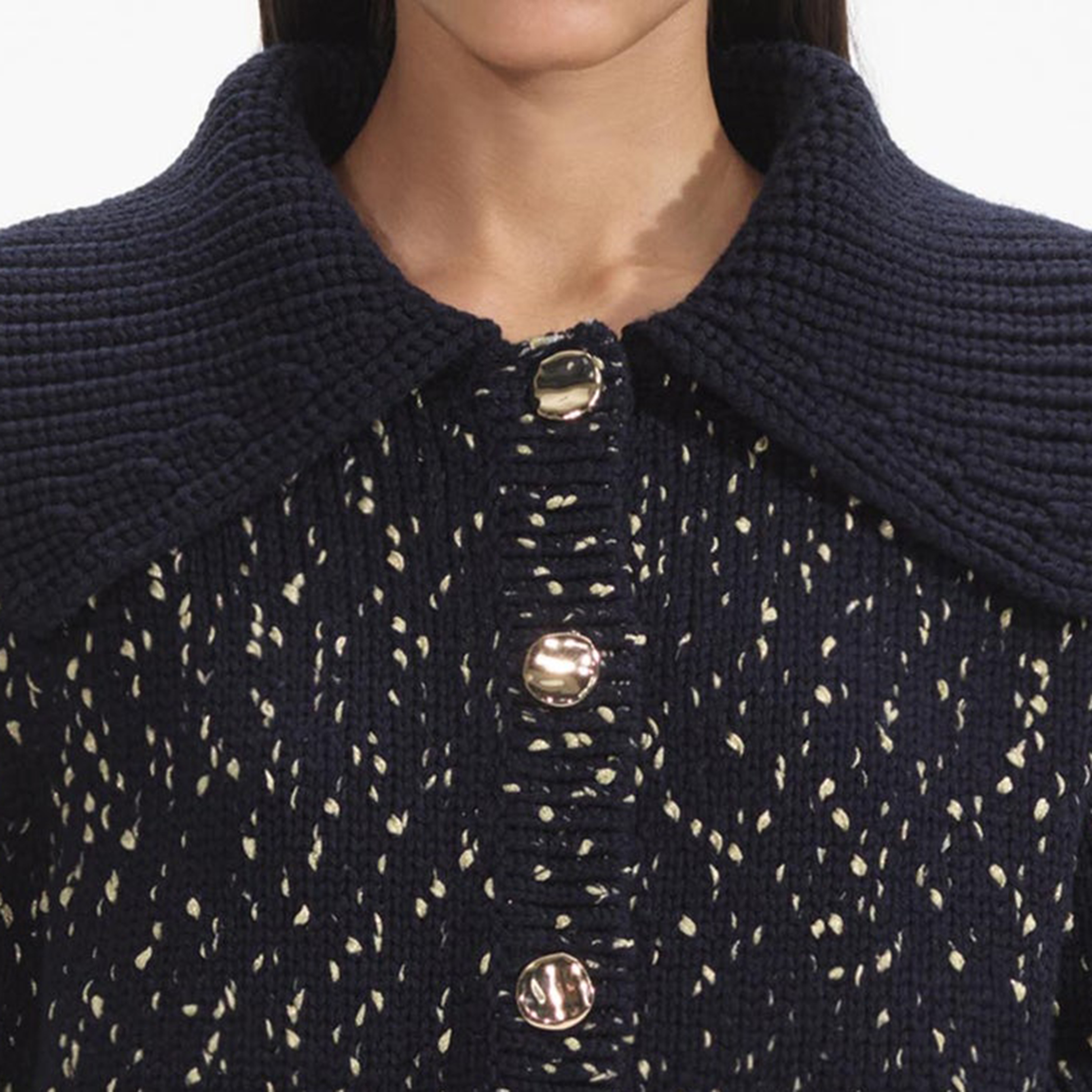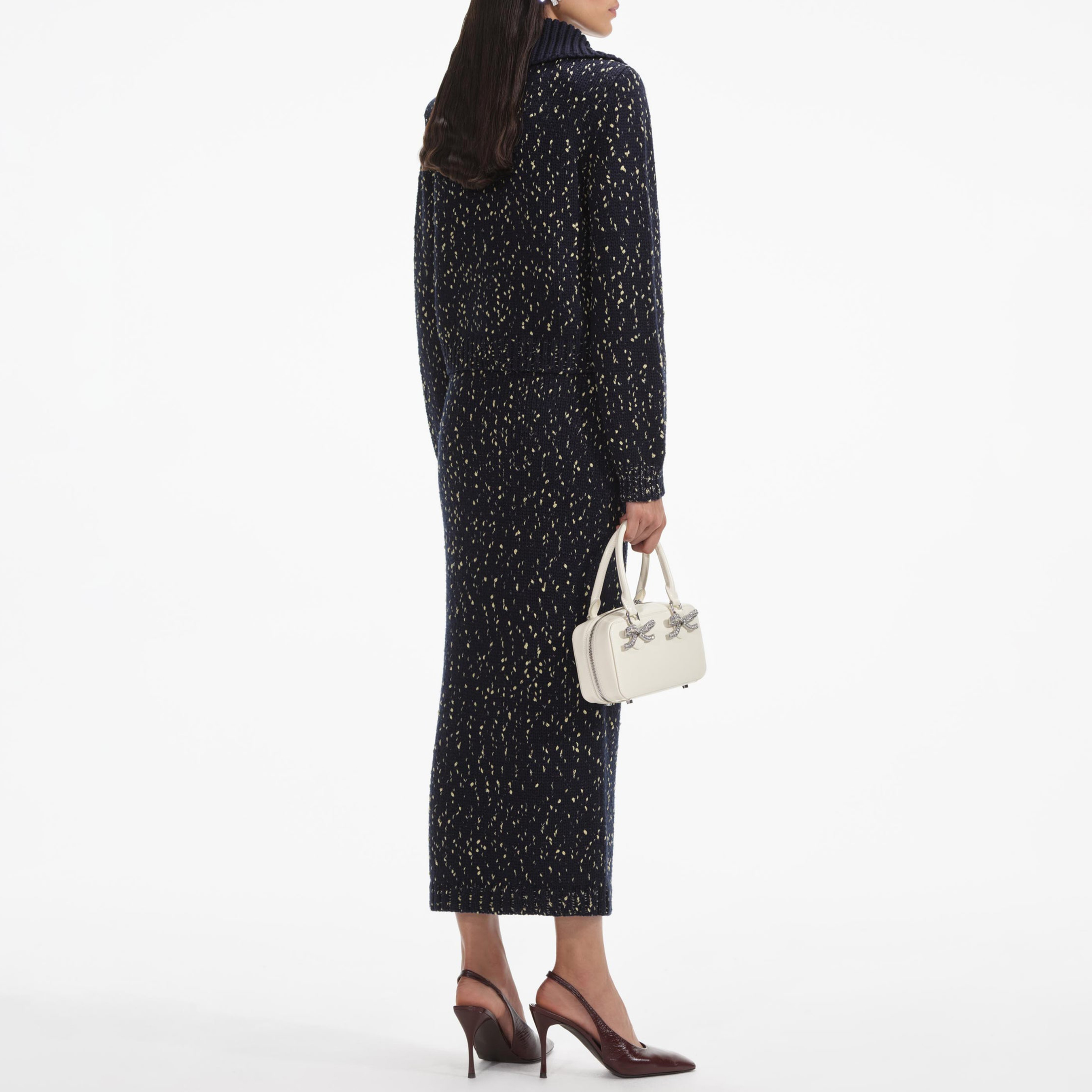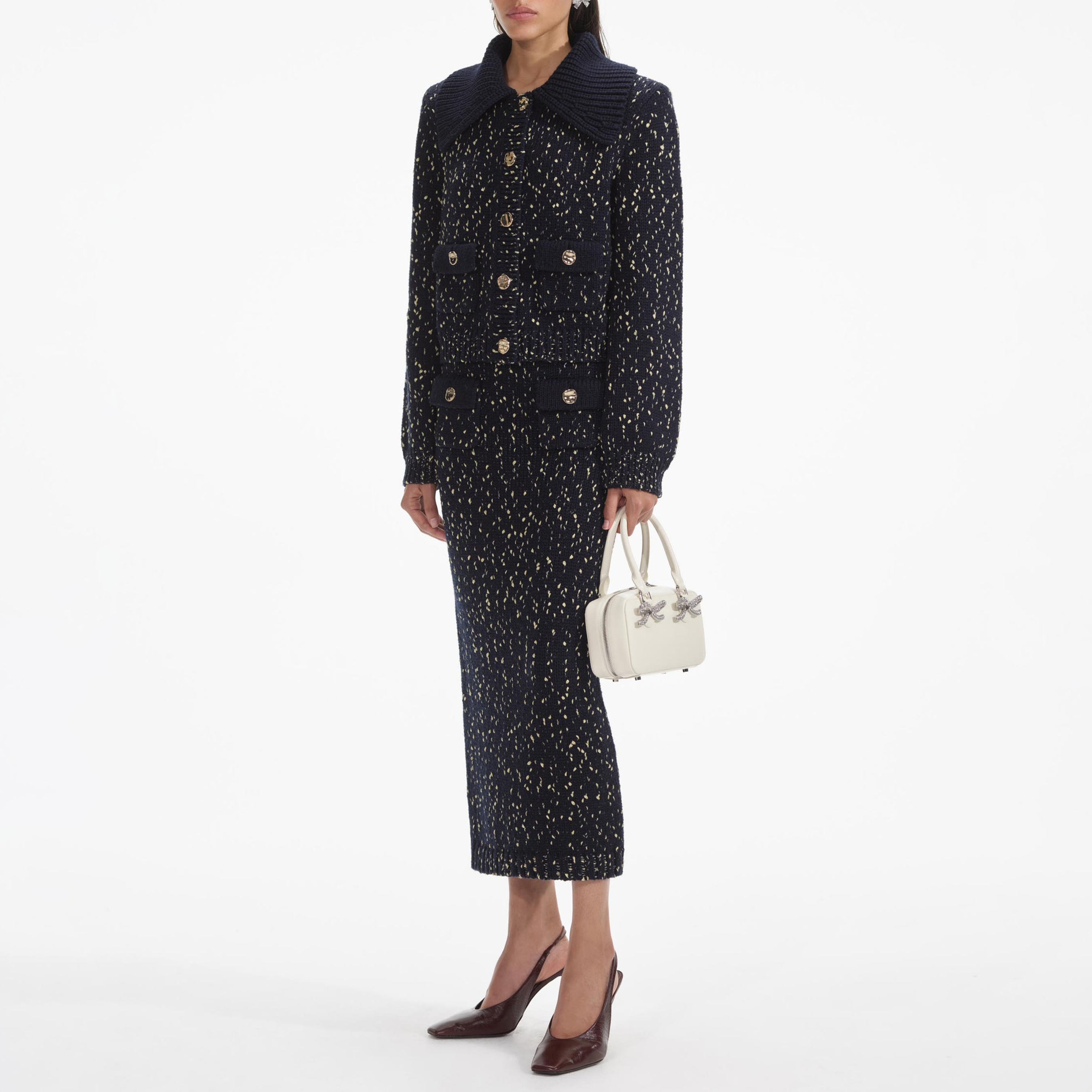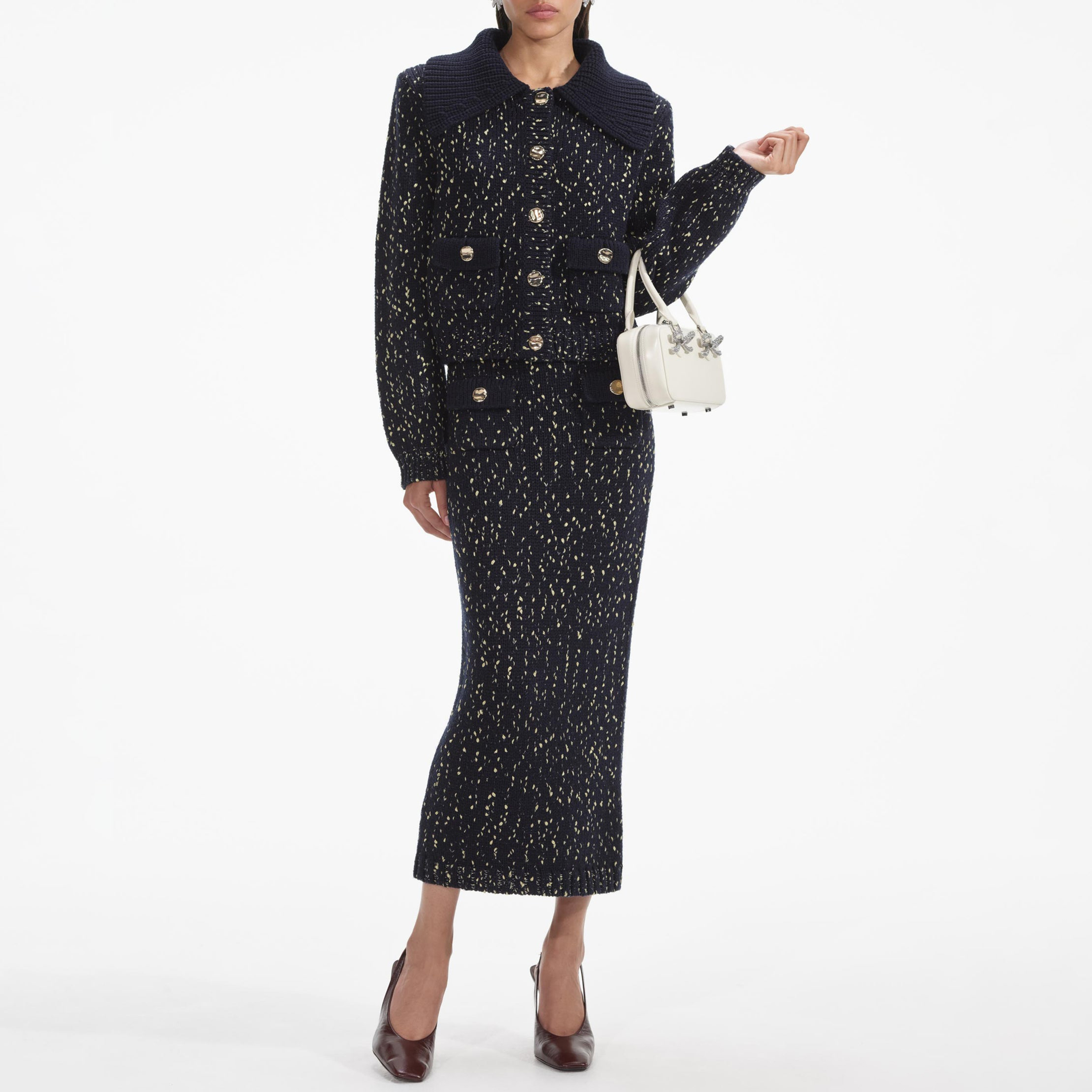 Navy Metallic Merino Knit Midi Skirt 854425